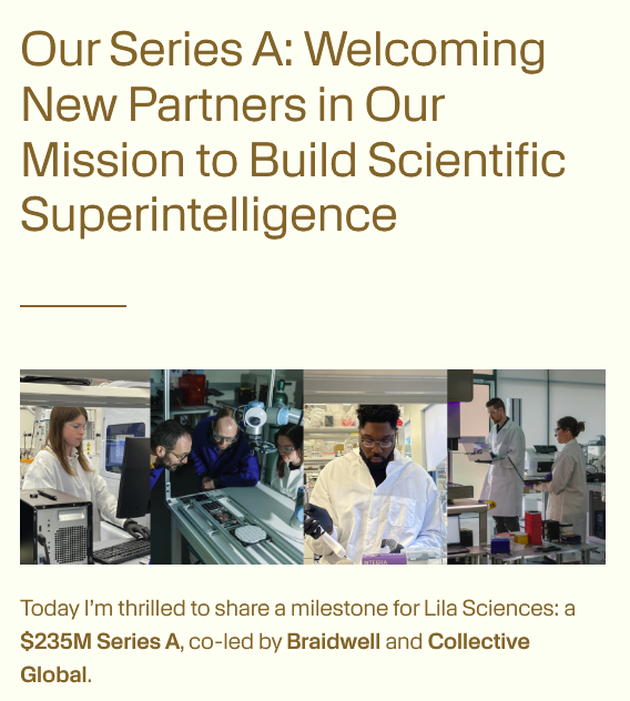 Lila Sciences is building the world’s first scientific superintelligence platform. This team is chasing one of the most ambitious visions in any industry…right here in Boston. Lila is operating at the intersection of artificial intelligence, science and robotics technology to re-architect the scientific process, with benefits across health, climate/sustainability, global resilience, etc. . Basically, any company in any industry that has a research and development arm has the potential to partner with Lila Sciences to transform R&D and bring innovation forward, faster. They are accelerating discoveries autonomously and showing us what’s possible in this brave new AI driven world. Let 100 flowers bloom!