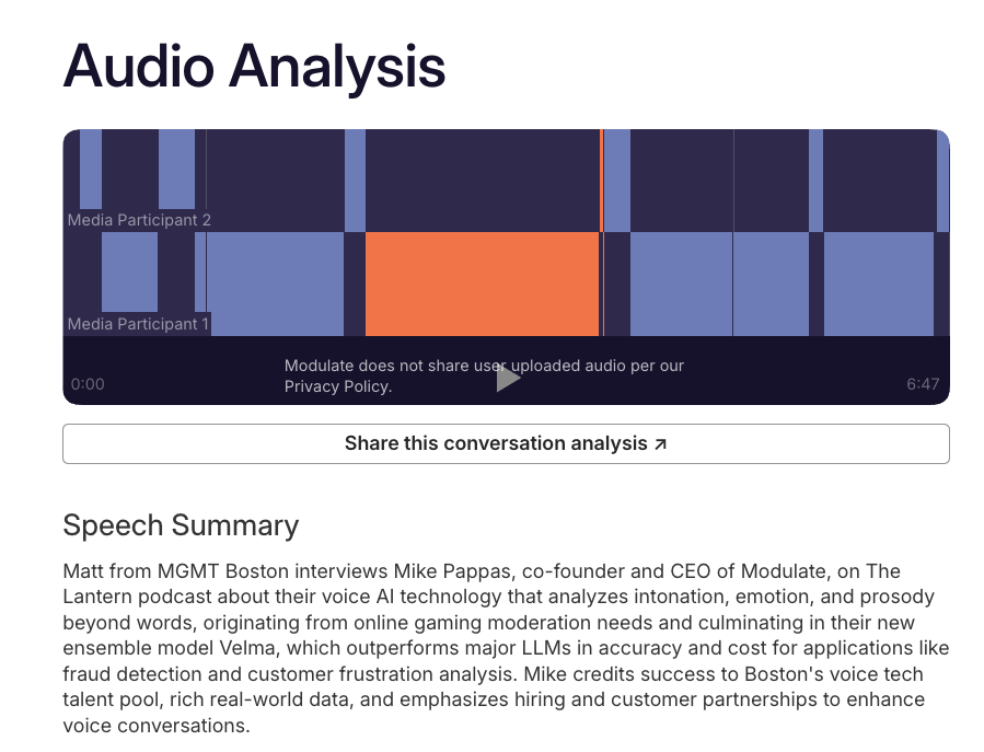 While the big LLM providers train on polished YouTube recordings, Modulate trains on the messy reality of someone playing Call of Duty on the subway shouting into their phone. That messiness is what’s real. That’s what’s human.